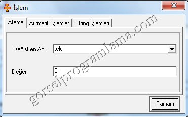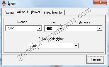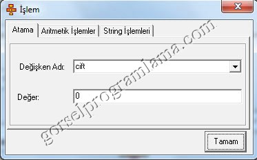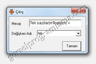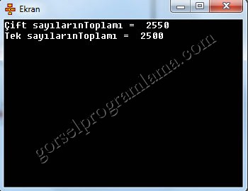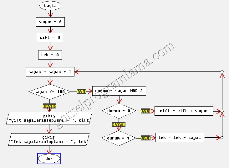 1 ile 100 arasındaki Tek ve Çift sayıların toplamı (Mod komutu ile) Flowchart