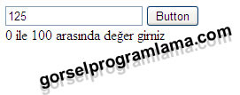 büyük eşitse 45 den ve küçük eşitse 100 e label1′ in text’ine geçti yaz, değilse label1′ in text’ine 0 ile 100 arasında değer giriniz yaz.
