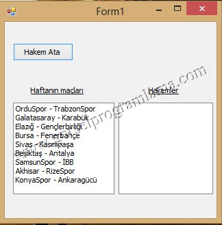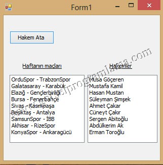 lstHakemler.Items.Add(hakemler[rasgeleSayi[i]]);