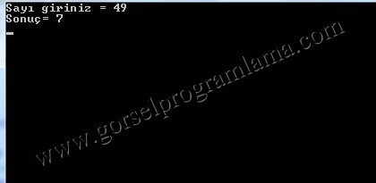 Console.WriteLine("Sonuç= {0}",Math.Sqrt(sayi));