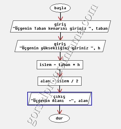 Taban ve yüksekliği girilen üçgenin alanını bulan program Flowchart