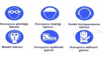 A- Baret kullanmalı B- Eldiven takmalı C- Koruyucu gözlük kullanmalı D- İş önlüğü giymeli