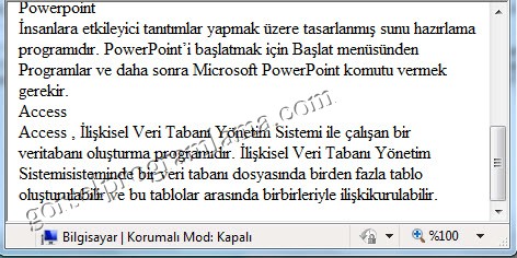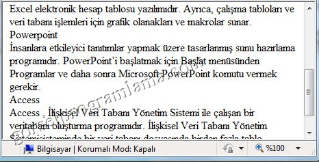 word’de tıklandığı zaman aşağıdaki şekli alır.