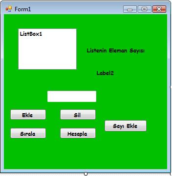 Formumuza 1 listbox, 1 textbox ve 5 button ekliyoruz formumuzun genel görünümü aşağıda ki gibi olacaktır.