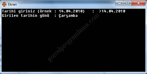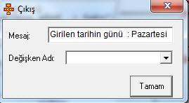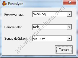 weekday fonksiyonu paramtre olarak girilen tarihe göre sayısal değer gönderir.Pazartesi için 1 ,Salı için 2 ,Çarşamba için 3 .. gibi. Bu yüzden klavyeden girilen tarihi tarih değişkenine atadık.Ve weekday fonksiyonunda da parametre olarak tarih değişkenini gösterdik.
