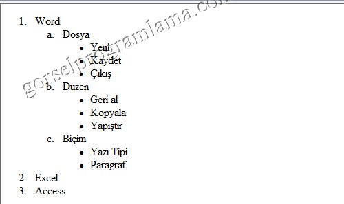 Yukarıdaki listeyi html dili ile oluşturalım.