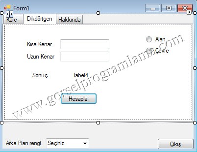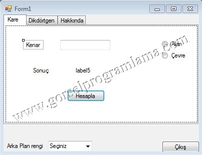 Çevre Radiobutonu seçiliyse label5’te karenin çevre sonucu gözükecek. (5 P)