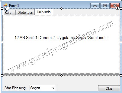 Hakkında Sekmesi tıklanınca yandaki yazı gözükecek . Çıkış butonu tıklanınca program kapatılacak , ekranda “İyi Günler” mesajı çıkacak. (5 P)