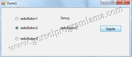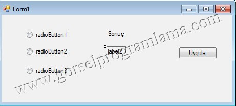 Örnek: Hangi radiobutton seçili ise onun text’ini label2’ye yazsın.